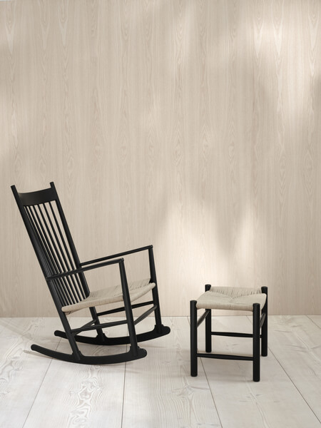 Wegner taburetten fra Hans. J. Wegner er en enkel og klassisk fodskammel, som er er perfekt til at stille sammen med J16 gyngestolen for at opnå det samlede sæt. Taburetten er fremstillet af massivt egetræ og har et håndflettet sæde af naturligt papirgarn, hvilket giver den et organisk udtryk.