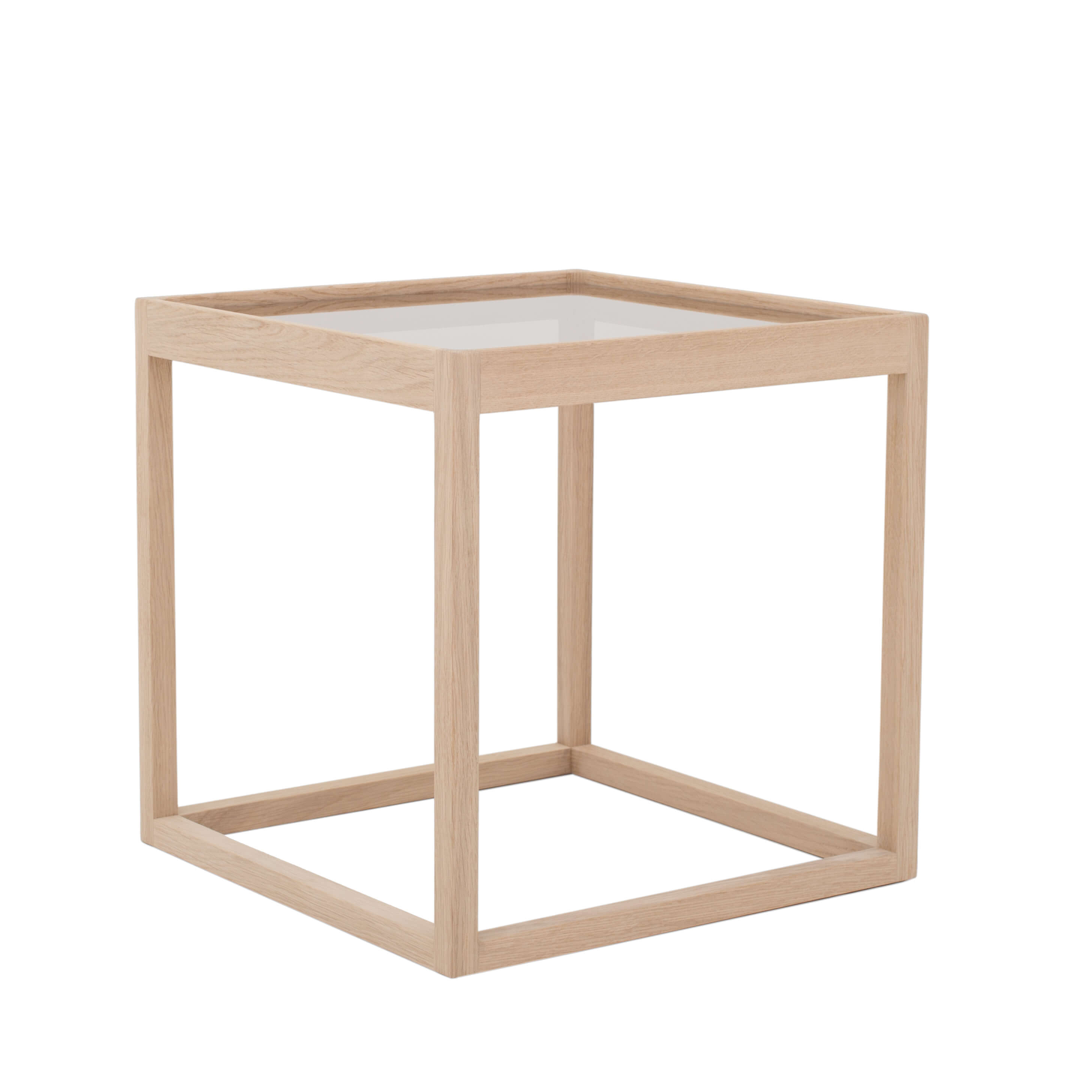 Kø Cube bordet med det minimalistiske design, kan bruges som sofabord eller sidebord. Kombinationen med trærammen og glasset, gør bordet til et interessant og tidsløst møbel.