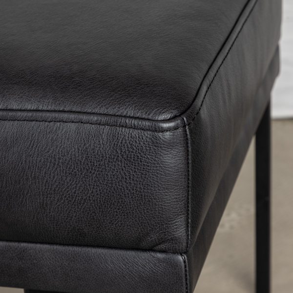 Bænken findes med polstring i sort eller cognac farvet læder.
