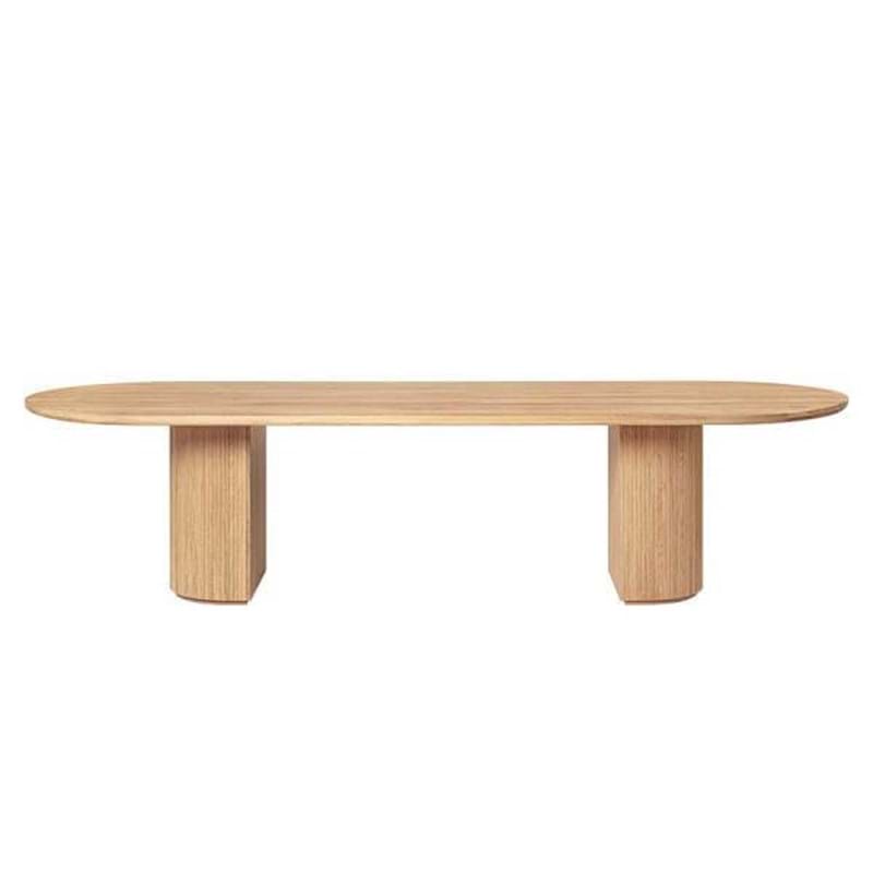 Det stilfulde ovale spisebord fra Gubi er designet af designstudiet; Space Copenhagen. Samspillet mellem den massive bordplade i egetræ eller marmor og de smukke runde baser, skaber et enkelt men også råt udtryk. Mulighederne er mange da valg af bordplade kan designes alt efter dit behov. Moon bordet kan relateres til traditionelt dansk tømrerarbejde, hvor der er et tæt samspil mellem godt håndværk og design er i fokus.