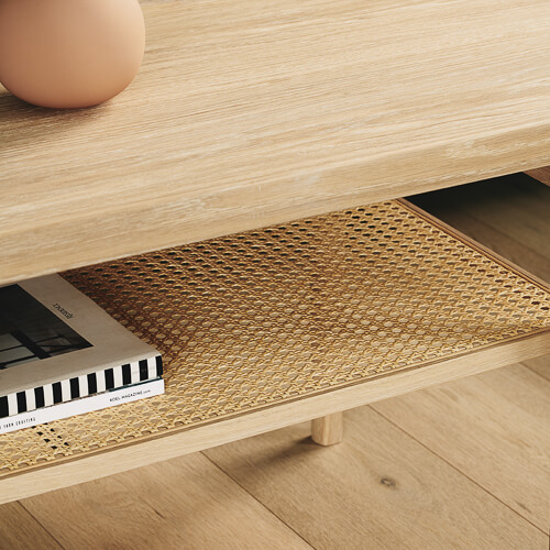 No. 25 er designet i 1960’erne af Jørgen Aakjær Jørgensen. Smuk forarbejdet fineroverflade med en Kehlet (afrundet høj kant for-, og bagtil). Hylden er af det smukkeste forarbejdede rørflet.  Dejligt med hylden til magasiner og fjernbetjeninger og for hurtigt at kunne rydde overfladen til andre ting.