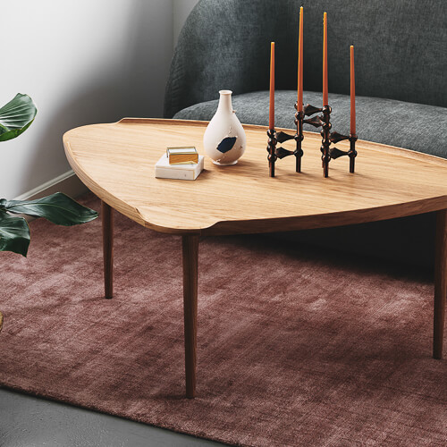No.55 blev designet i 1950'erne af Jørgen Aakjær Jørgensen. Sofabordet har raffinerede detaljer, såsom den bløde og afrundede kehletkant, der smukt danner ramme om bordet og dets unikke finérarbejde. Kanten forhindrer ting i at falde ud over bordkanten. Et let, enkelt og elegant sofabord i et æstetisk design.