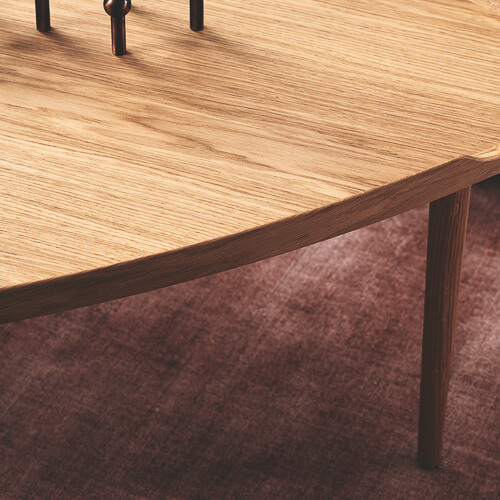 Bordplade i 4 mm. finér. Kehletkant og ben i massiv eg. Fås i tre olietyper: røgbejdset eg olie, hvidolieret eg og dette eg olie natur. Findes her på shoppen.