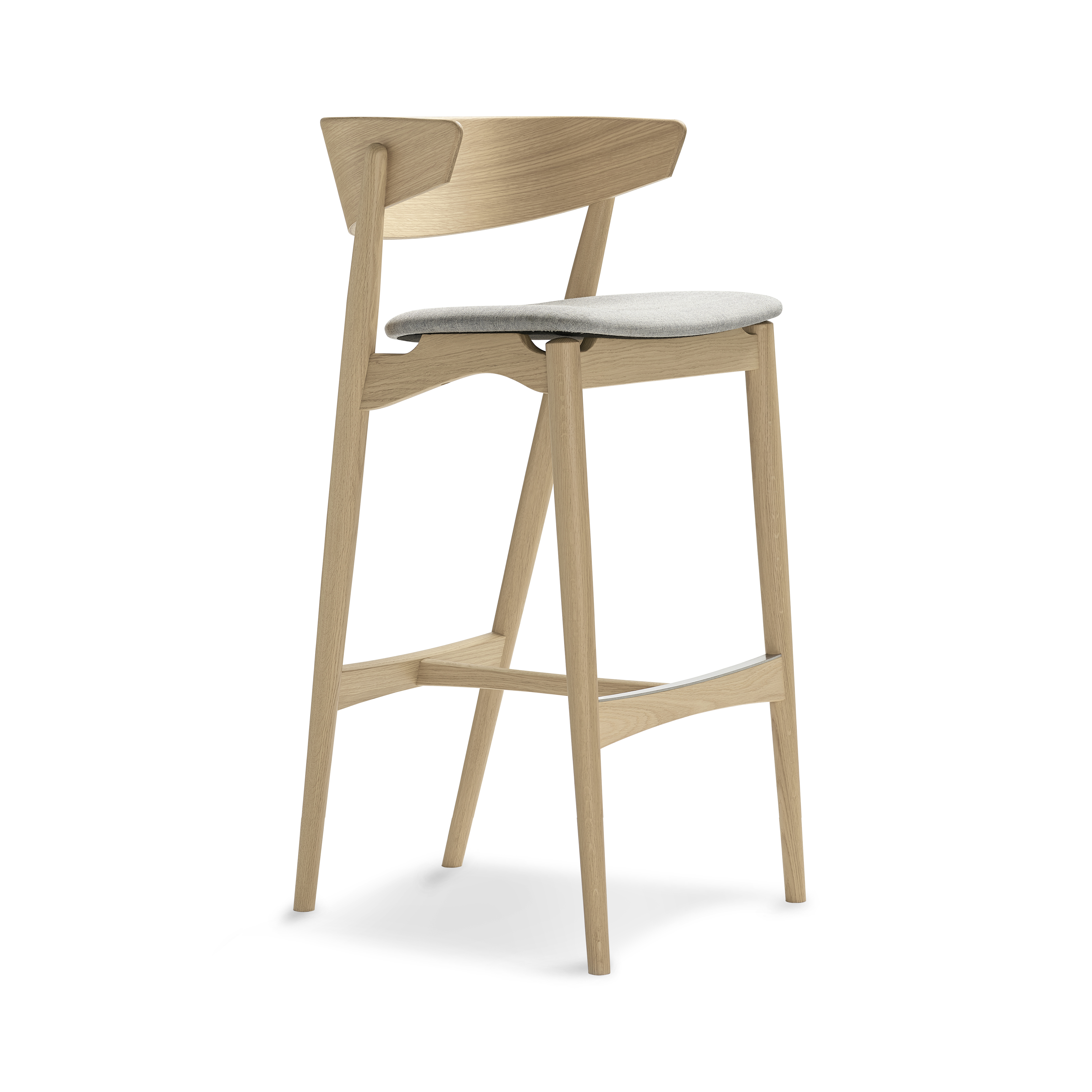 NO 7 barstol, sæbebehandlet eg, 75 cm, stof