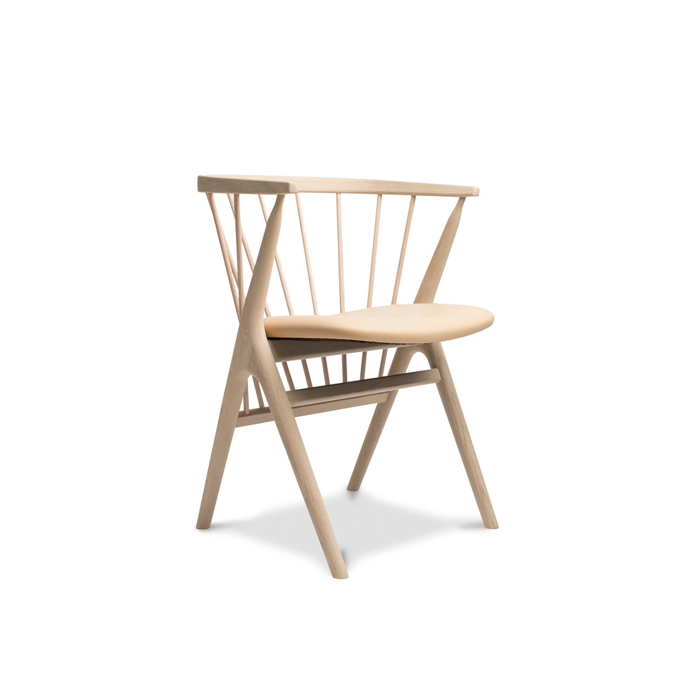 NO 8 spisebordsstol, hvidpigmenteret eg, lyst læder