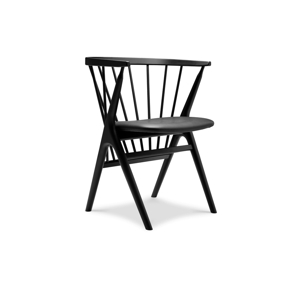 NO 8 spisebordsstol, sort bøg, sort læder