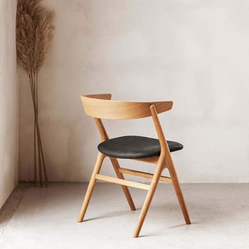 NO 9 spisebordsstol, sæbebehandlet eg, anthracite læder