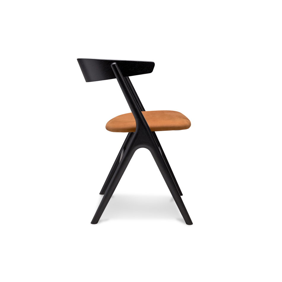 NO 9 spisebordsstol, sort eg, cognac læder