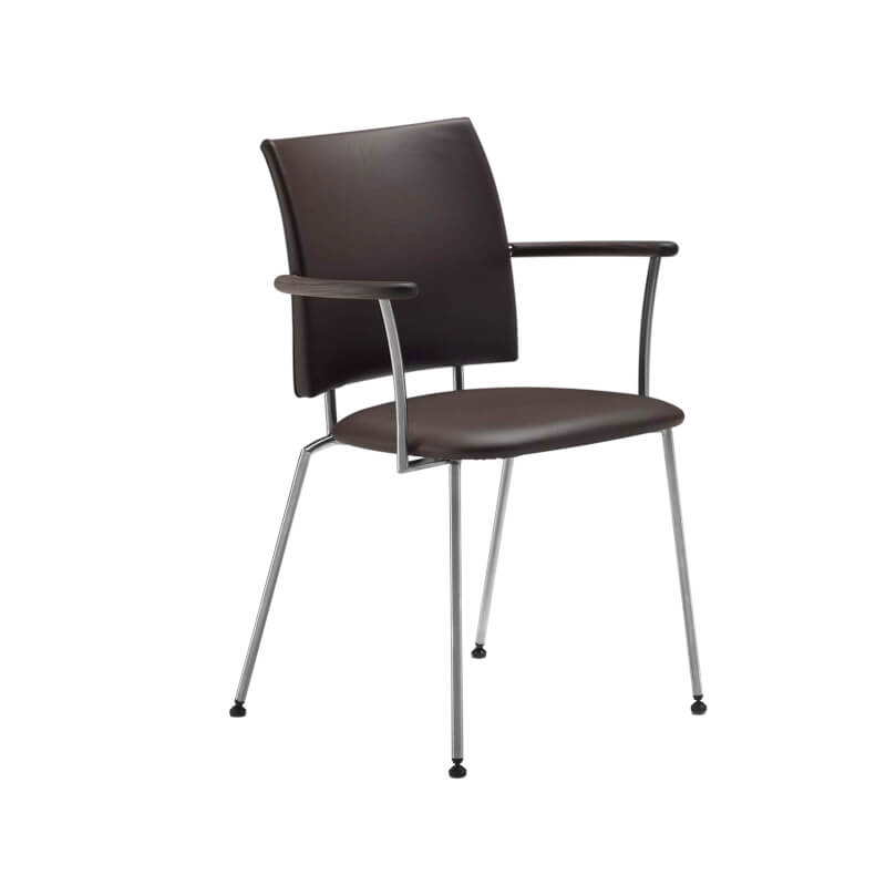 Panther armstol model A (GM4116) fra Naver Collection. Panther stolen har polstret sæde og ryg mens benene er i rustfrit stål. Armlænene fås i forskellige træsorter - denne model er i sortbejdset ask. Stolen er produceret i de bedste materialer og er udført i god dansk håndværksmæssig kvalitet. Stolen har både et moderne og klassisk udtryk og er desuden meget behagelig at side på. Dette er modellen "Leather Naver Select", som er en kombination mellem læder og træ.