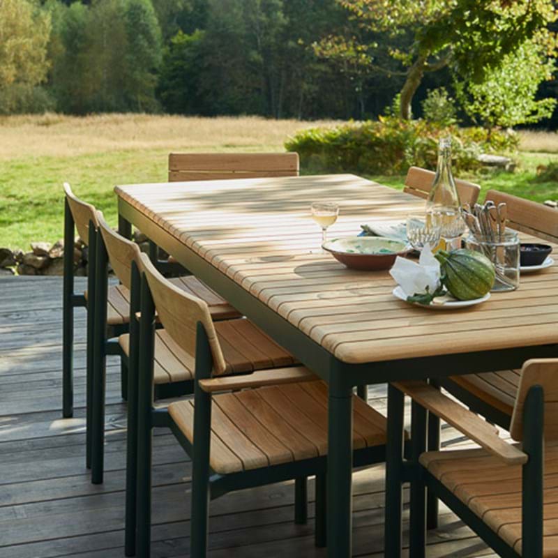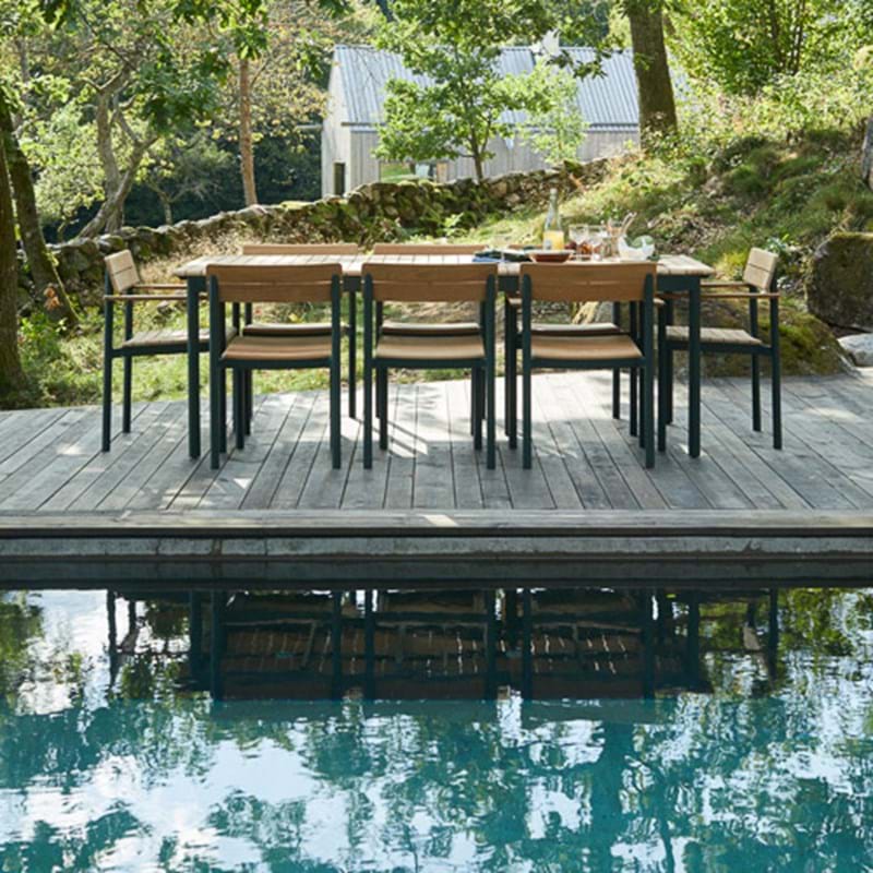 Pelago serien er en smuk og enkel stol. Den er nem at flytte med og tillige med kan den stables. Med ryg og søde af teaktræ og pulverlakeret aluminiumsramme.