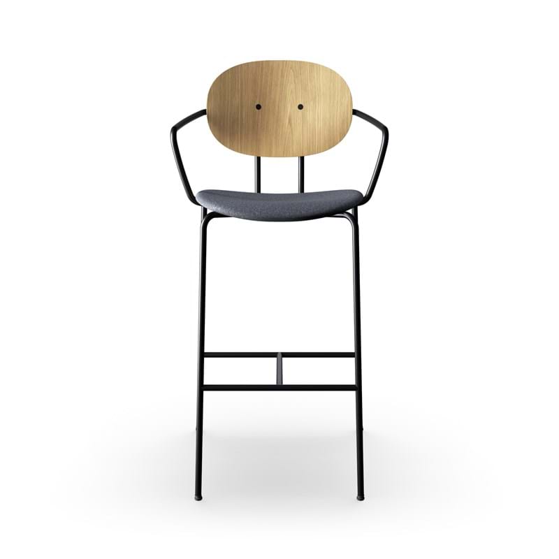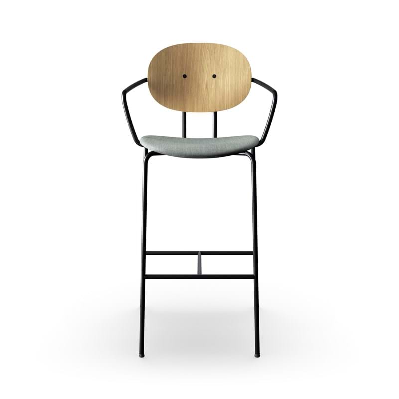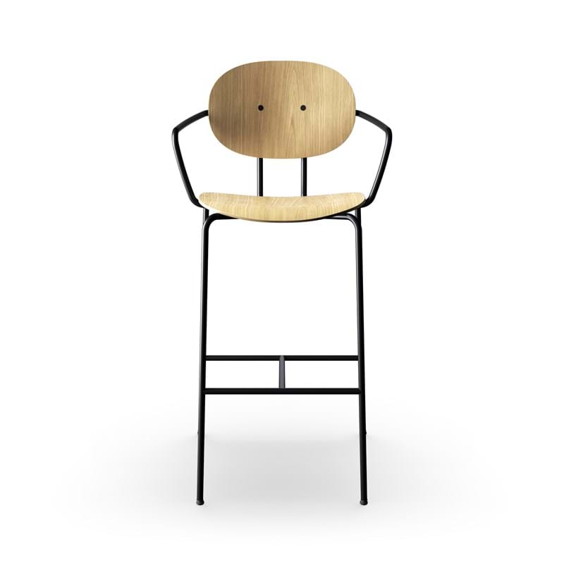 Piet Hein barstol m. armlæn, hvidpigmenteret eg, 75 cm