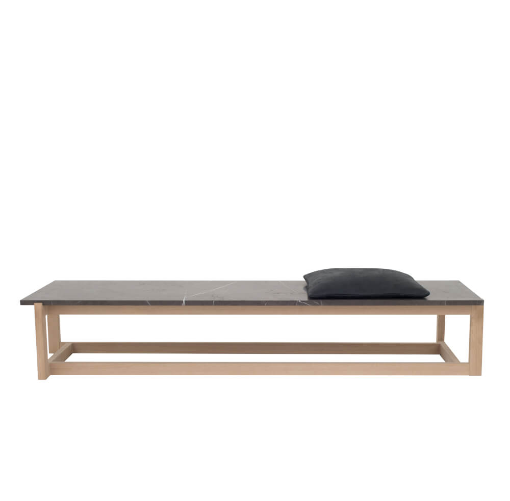 Dette lave og moderne sofabord udgør en ideel kombination af brugervenlighed og evne. Mulighederne for anvendelse er store da stilen passer til mange sofaer. En blød læderpude kan tilføjes og så kan du bruge møblet som bænk.