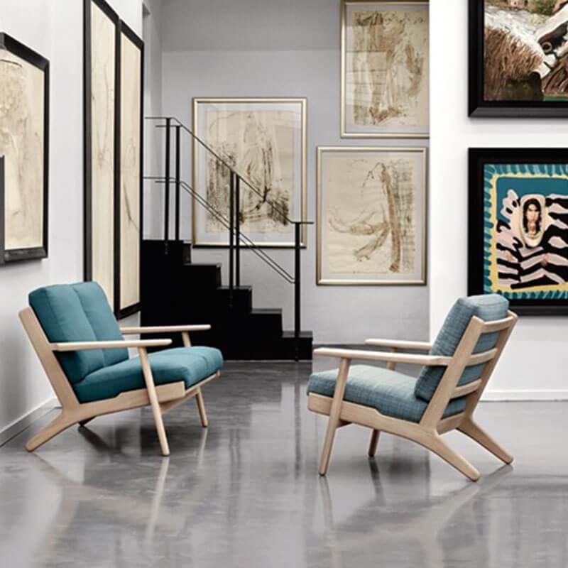Denne stol er designet af Hans Wegner med fokus på design og komfort. Stolens hynder er fremstillet af koldskum, der giver en siddekomfort i topklasse. Stolen er smuk og en sand nyklassiker der aldrig vil gå af mode, derfor passer denne sofa ind i et hvert hjem.