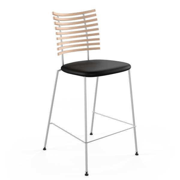 Barstolen fremstilles i flere træsorter: bl.a. eg, valnød, elm, ask og en sortbejdset udgave. Kontakt os for at høre mere om mulighederne for at skabe en barstol der er det rigtige match til dit hjem.