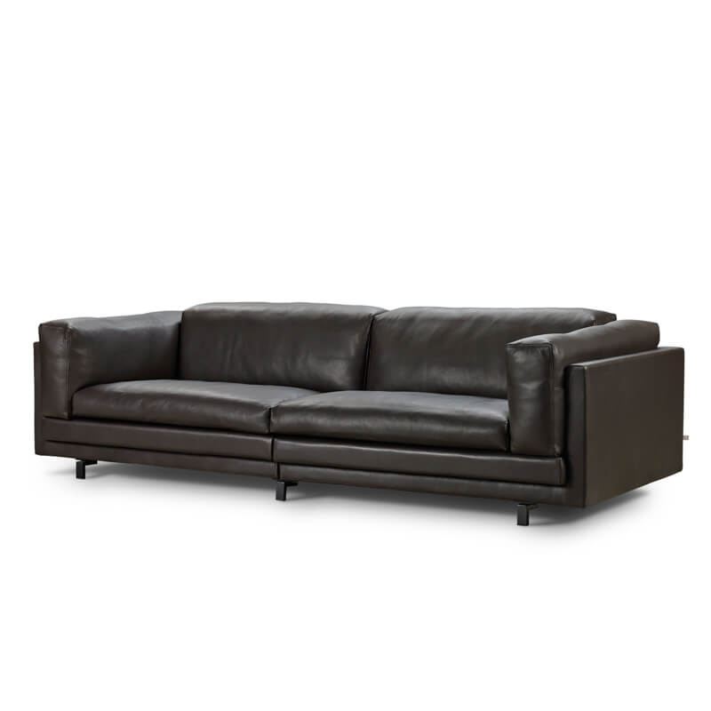 Kontrasten mellem den slanke, stramme yderskal og det indvendige polstring af puder af skum og dun skaber dynamik i formsproget. Her får du en sofa, hvor du sidder komfortabel, men stadig oprejst. Sofaens rene linjer gør desuden at den passer ind i enhver indretning.