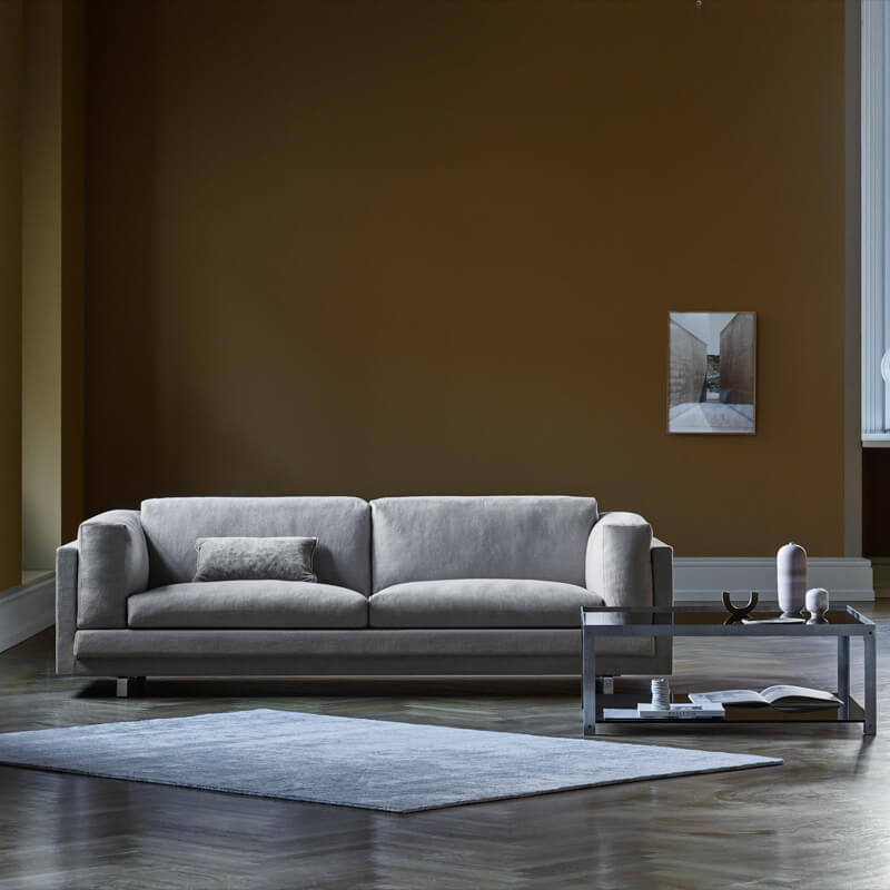 Kontrasten mellem den slanke, stramme yderskal og det indvendige polstring af puder af skum og dun skaber dynamik i formsproget. Her får du en sofa, hvor du sidder komfortabel, men stadig oprejst. Sofaens rene linjer gør desuden at den passer ind i enhver indretning.