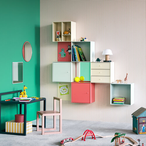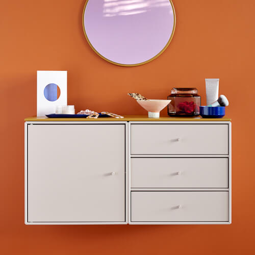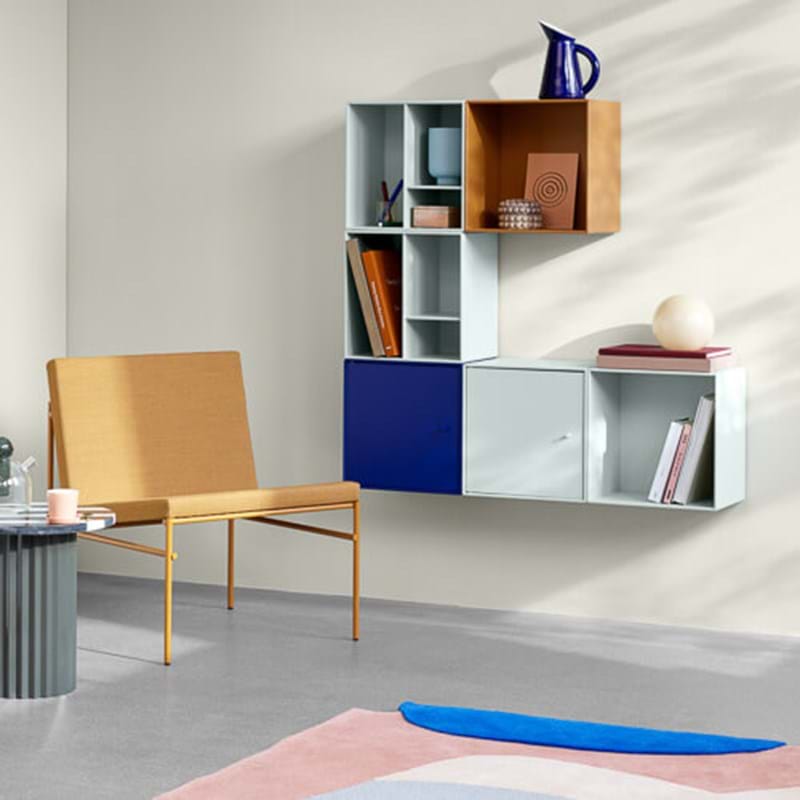 Montana Mini 8 mm med låge. Det gør det muligt at gemme rod og personlige sager væk. Brug det som sengebord, sidebord eller skab, eller kombinér det med andre moduler fra serien.