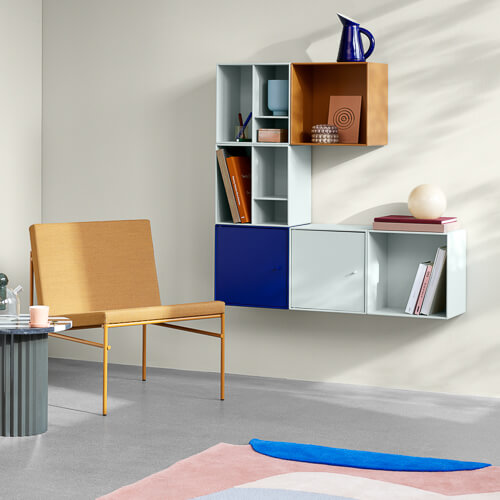 Montana Mini leveres med ophæng og to afstandsdupper. Tilkøb Montana Mini MPLI sokkel, hvis modulet skal placeres på gulv. Maks. belastning 10 kg.
