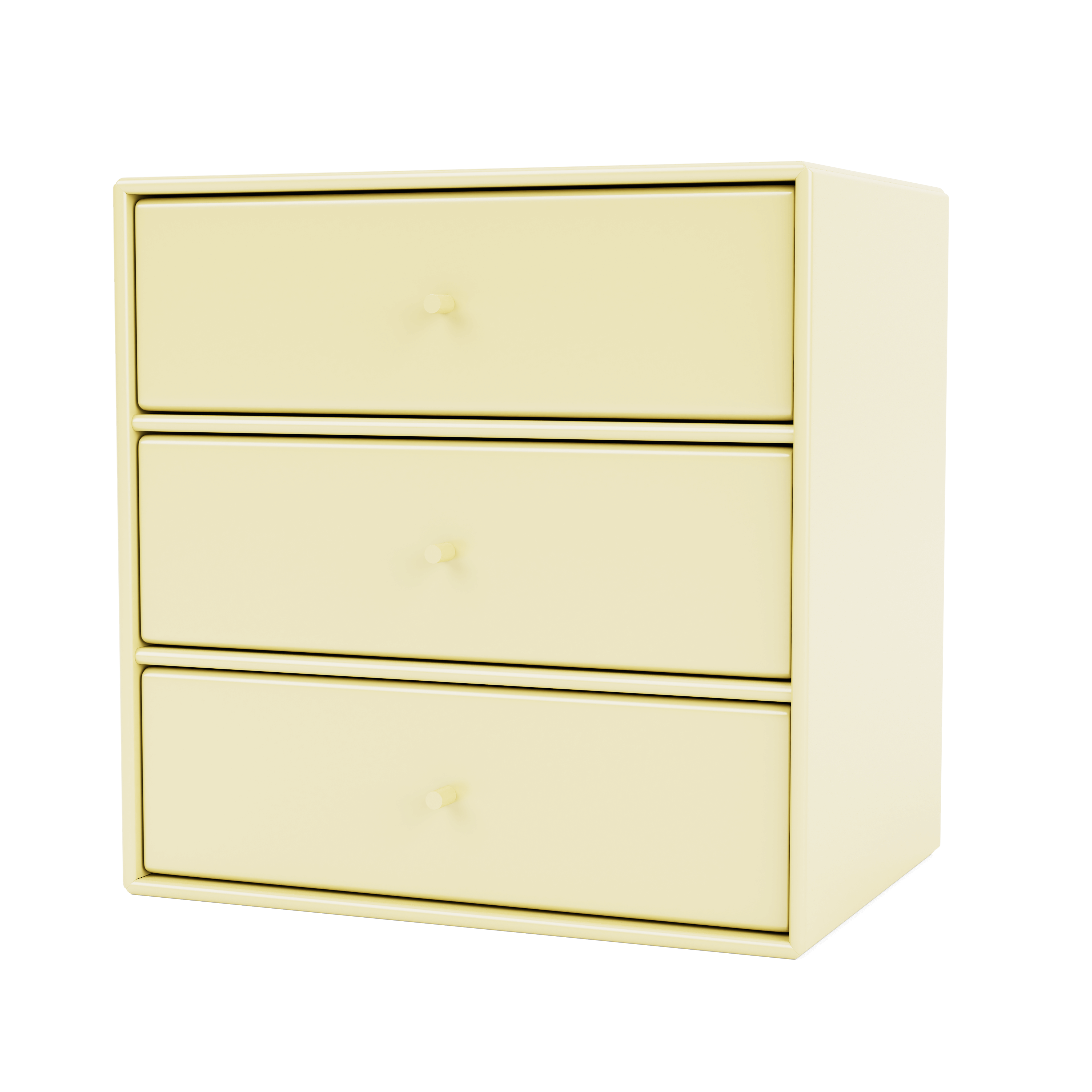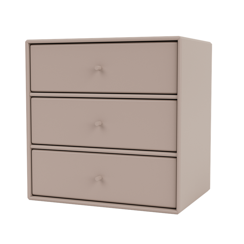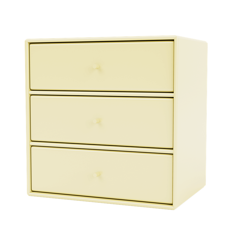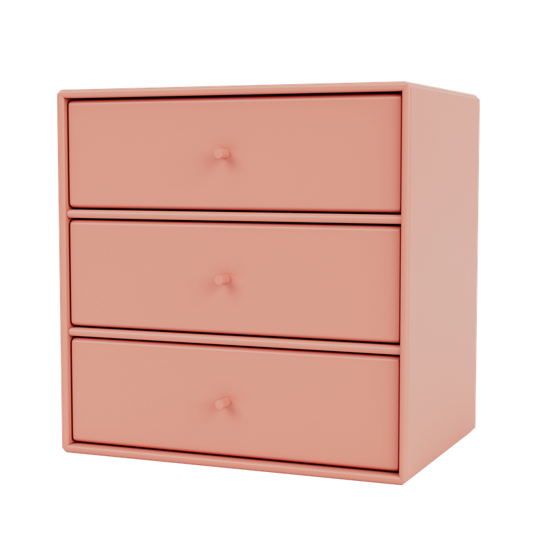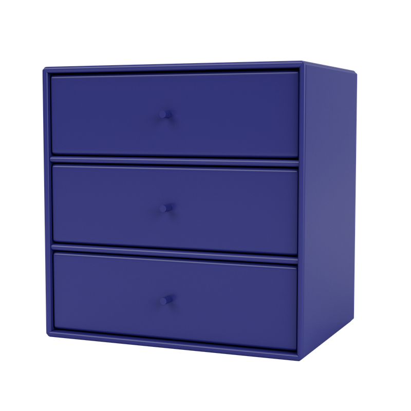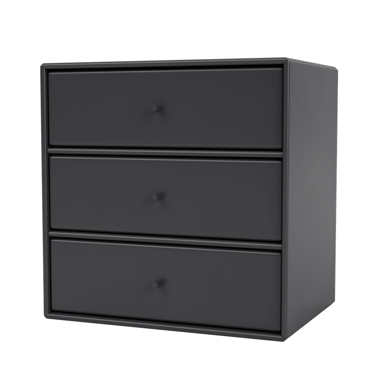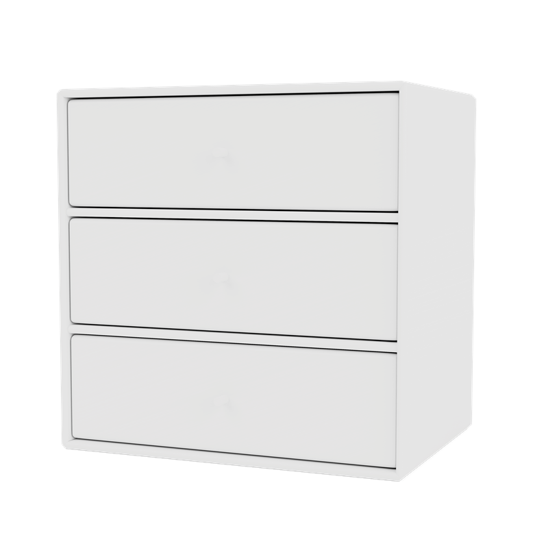 Montana Mini 8 mm med skuffer. Det gør det muligt at gemme rod og personlige sager væk. Brug det som sengebord, sidebord eller skab, eller kombinér det med andre moduler fra serien. Skufferbakkerne hviler på hylderne og kan tages helt ud af modulet. Modulet kan dermed anvendes både med og uden skuffebakkerne.