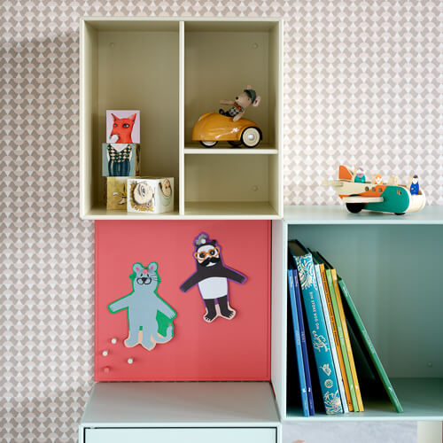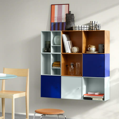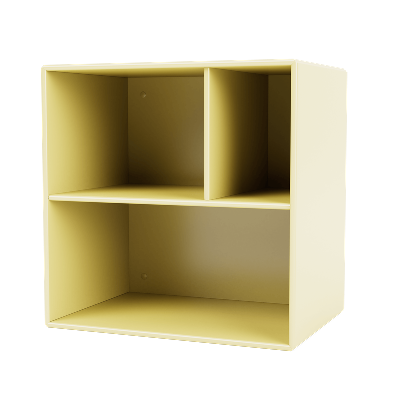 Montana Mini 8 mm med tre asymmetriske hylderum. Perfekt som displaymodul eller lille sættekasse. På denne version er det største rum placert nederst. Montana Mini fås i 10 matchende vandbaserede lakfarver.