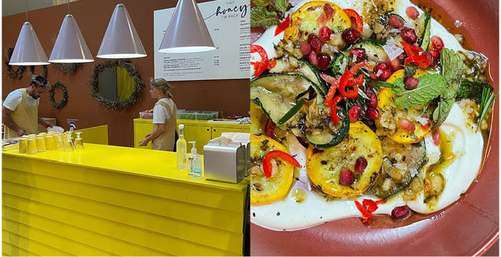 "Café Honey" HER MÅTTE VI BARE SPISE. At vælge et sted til, som gør opmærksom på den gode sags tjeneste, på det vi alle bør tænke på og tænke over. Det vi bør tage action på. Her var det en trendcafe på Formland messen som rettede opmærksomheden på biernes vigtige funktion for klodens overlevelse. Alt var sødet med honning, naturens eget sødemiddel. Pas på naturen, læs teksten på en af billederne og lad dig inspirere eller husk det som en vigtig reminder. Naturligvis et inspirerende total-koncept - se lige kagen i montren - yummi.