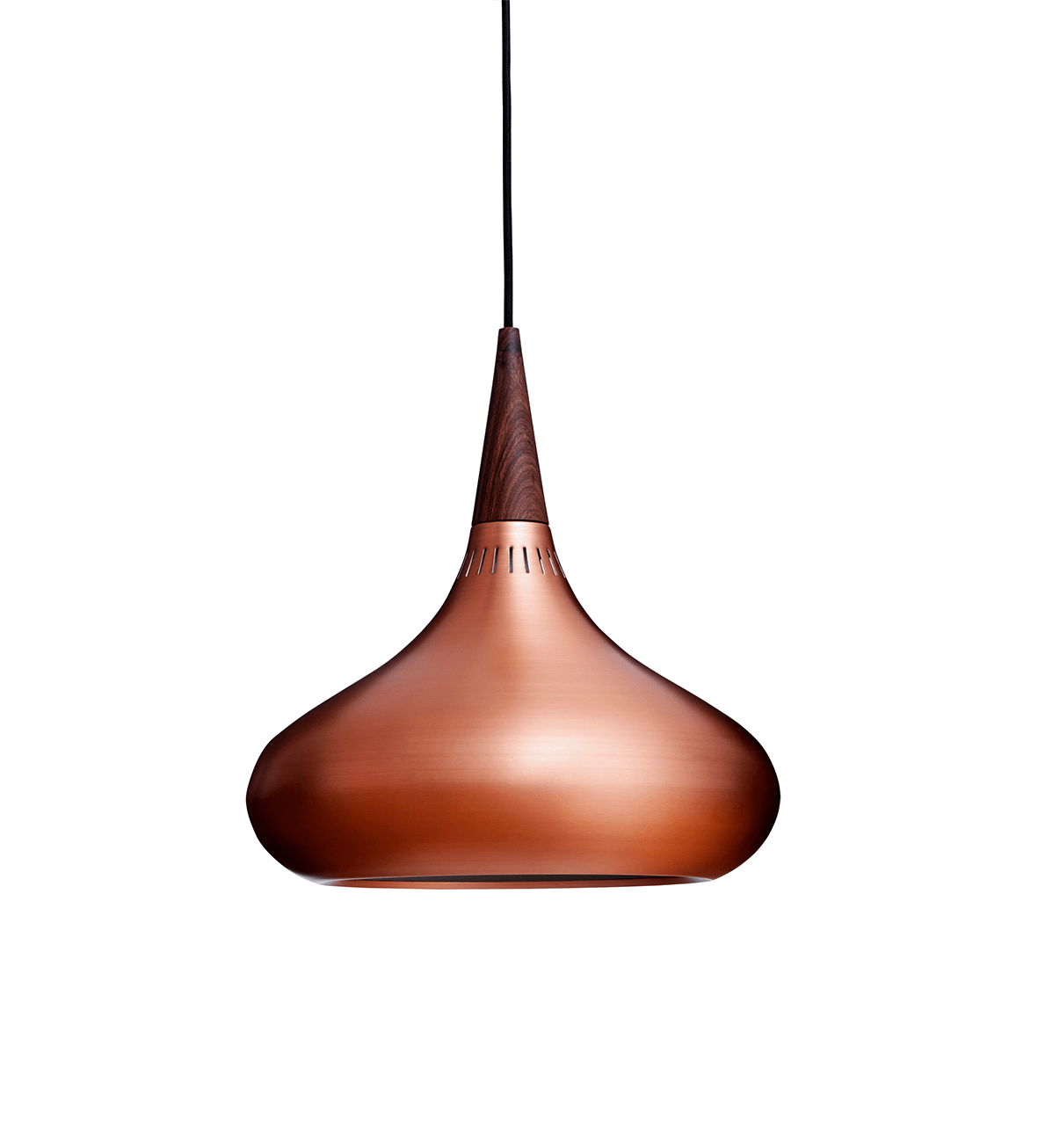 I toppen af Orient er der 24 smalle, lodrette spalter der tillader lys at filtrere igennem det ædle metal. Lavenergi lyskilden skjules godt af formen som er med til at sikre et blødt og behageligt lys uden blænding, men derimod med en smuk glød.