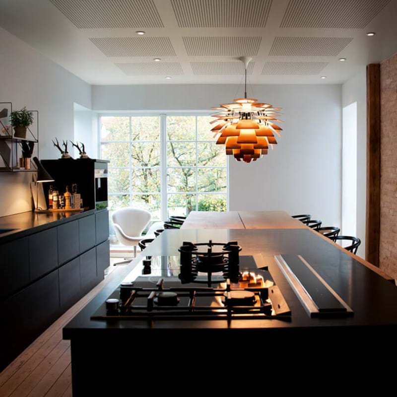 PH Koglen, på internationalt plan også kendt som PH Artichoke, har igennem de sidste mange årtier fundet sig godt til rette blandt nogle af de største internationale design-ikoner i nyere tid og er den dag i dag en af de mest kendte designer lamper i verdenen. PH Koglen er designet af den berømte danske designer Poul Henningsen og er bl.a. kendt for sit utrolig bemærkelsesværdige og smukke udtryk, der skyldes det meget ikoniske Kogle-design. Koglens opbygning er mildest talt beundringsværdig. Pendlen består nemlig af 72 individuelle blade der ved hjælp af omhyggelig placering danner den form som Koglen er bedst kendt for. De 72 individuelle blade tjener dog ikke kun til formål for det flotte udseende, men er placeret således at lyskilden er usynlig, ligegyldigt hvilken vinkel man ser på lampen fra. Det sikrer et 100% blændfrit lys og eliminere mange af de udfordringer man ofte støder på når man ønsker at hænge en pendel over øjenhøjde. Med PH Koglen er du ikke kun sikret en ubeskrivelig smuk, beundringsværdig og ikke mindst gennemført pendel, men med hver Kogle følger også et stykke af det fineste den danske kultur har at byde på.