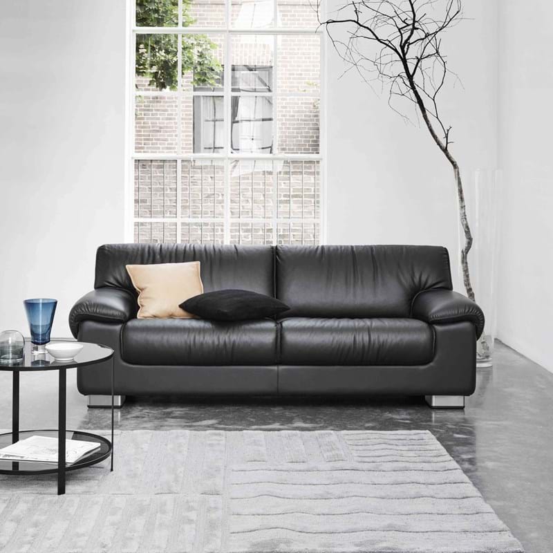 Denne Rio sofa fra Berg Furniture er en klassisk sofa i mørkt læder i en fantastisk kvalitet. Sofaens siddekomfort er, med sammensætningen af skum i flere hårdheder og kraftige fjedre i bundrammen, helt fænomenal, og den er på en gang både støttende, behagelig og fast. Den stilrene sofa til tre personer er perfekt til den klassiske stueindretning, og er en tidløs klassiker, der aldrig går af mode.