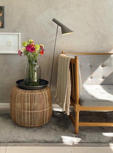Materialer har stor betydning for hvordan et hjem føles og her skal der skabes balance mellem hårdhed/blødhed, kunstige/