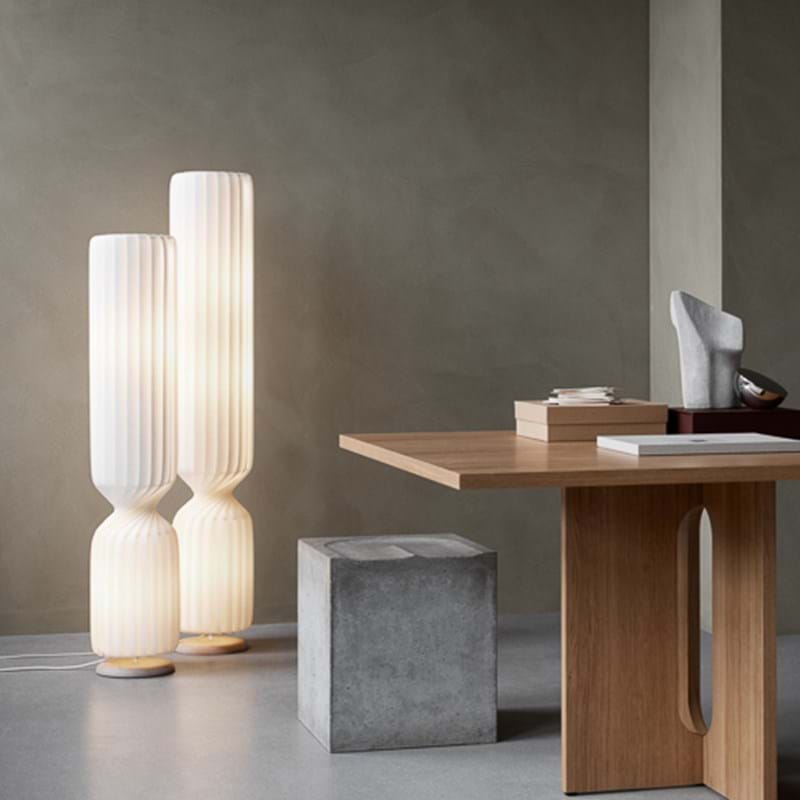 Serien TR41 fra Tom Rossau har stærke referencer til designbrandets populære lamellamper TR7 og TR37, dog byder det nye design på et nyt og stramt udtryk, der skaber en særlig kontrast til de bløde lameller. Det velkendte cylinder i dette design strammet op med en indsnævring både i top, bund og midte, der giver lampen en særlig timeglasform. Lampeskærmen er udarbejdet i et særligt materiale skabt af en blanding mellem papir og plast, som i kombination yder en behagelig opacitet og høj kvalitet.