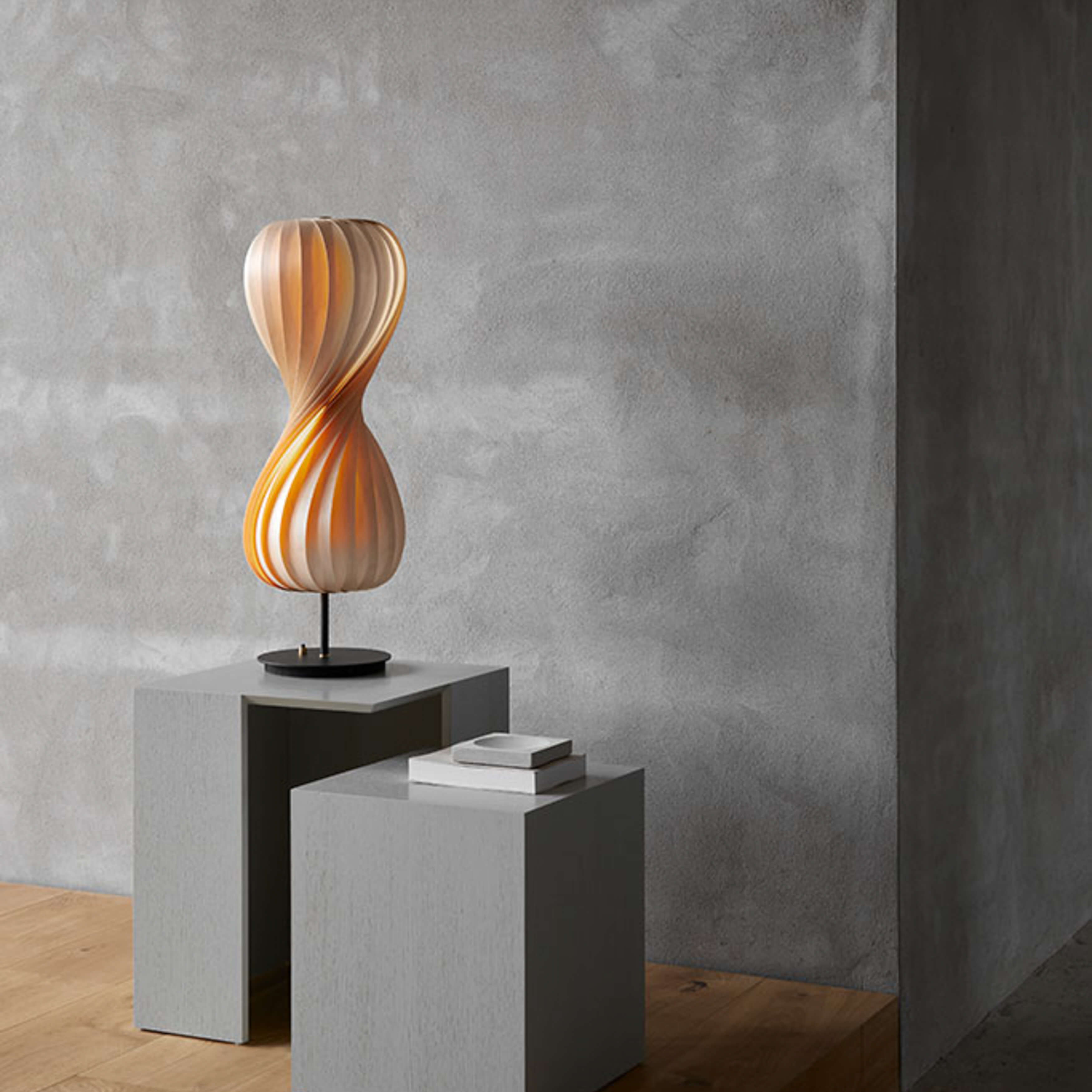 Den danske designer, Tom Rossau, har siden 2004 designet sine unikke lamper. Lampeserien bliver produceret i tyndt træfiner og plast. Lamperne giver et blødt og varmt lys. Og har så absolut et skulpturelt udtryk. En lampe der får opmærksomhed fordi den er så smuk og ”sigende”. Tom Rossau har produktion og butik på Frederiksberg i København.